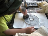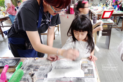 廣興紙寮提供多樣DIY活動,費用約100-400元,門票可折抵。最簡單、最不花時間的就是手抄紙拓印,只要將紙張壓在印模上敲打拓印即可,時間不夠又想讓小朋友體驗的選這個挺適合的。