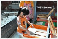 手抄紙製作過程不會太難,先使用工具將紙漿收集定型。