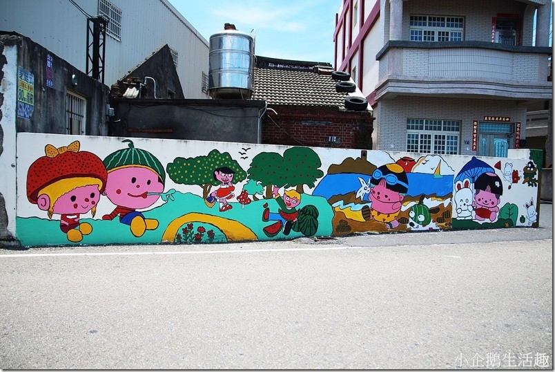 彩繪村分為二區,一區以知名卡通人物為主,有小小兵、小叮噹、麵包超人、海綿寶寶、小熊維尼...等,另一區則是以西瓜太郎為主,可愛逗趣的西瓜太郎與他的動物朋友們看了讓人會心一笑。