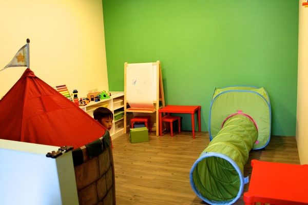 兒童遊戲區有帳篷、爬爬隧道、塗鴉組與各式小玩具,這裡空間不算大,也夠讓小朋友玩一陣子。