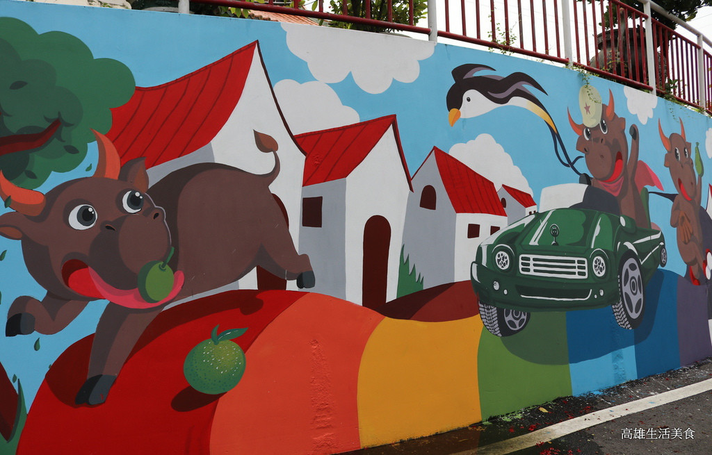 臥牛彩繪位在高雄燕巢區的捆牛湖社區內,純樸的社區小巷內,有著許多可愛的牛牛彩繪,很適合帶小朋友去拍照。
