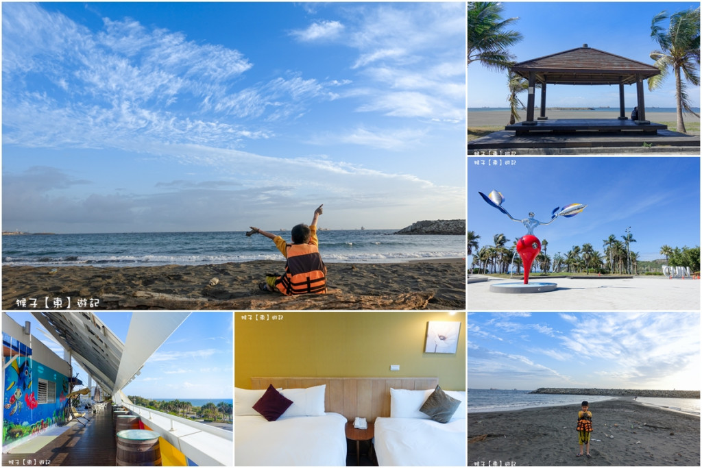 旗津道與台中的文華道會館是同一個團隊打造的,是一個小巧精緻的飯店,飯店本身沒有親子設施,不過對面就是旗津海水浴場,帶小朋友來,可以去海水浴場踏踏水玩沙。