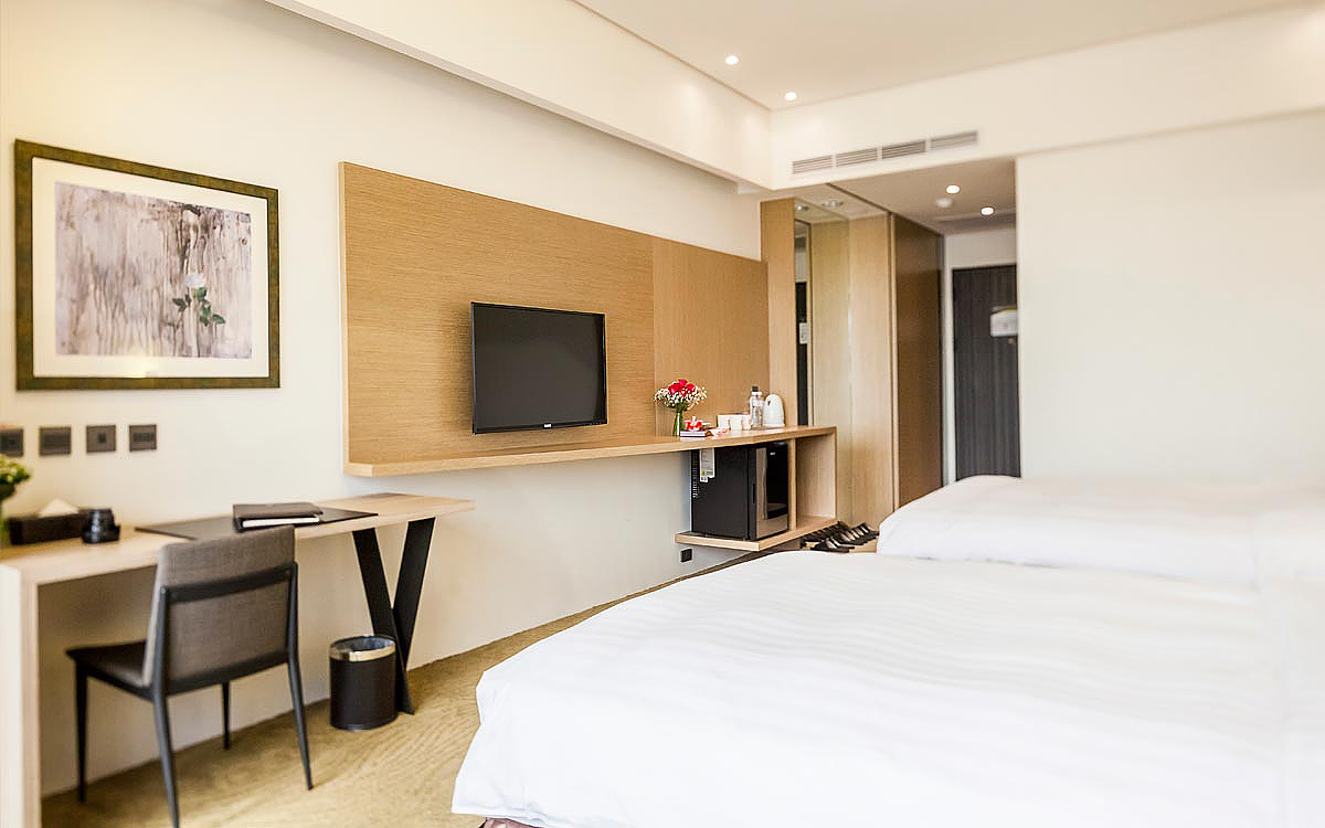 入住的房型有雙人及四人房,這間是天籟經典房,房內空間10坪,配置1大床,適合2大1幼家庭入住。