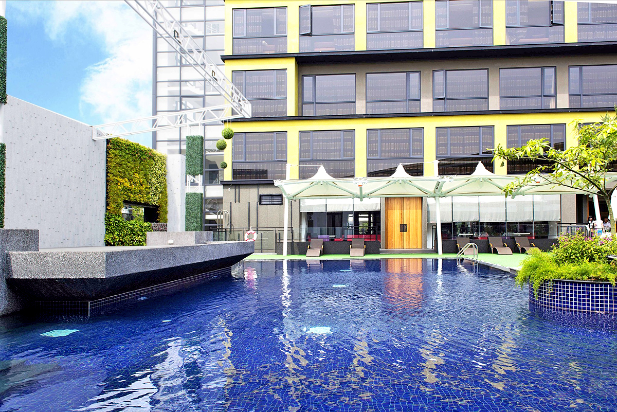 夏天來必玩的就是戶外泳池了,飯店擁有標準泳池與兒童戲水池,小朋友只要泡在裡面都捨不得離開。飯店的餐廳除了西式餐廳外,還有一間港式飲茶可以提供給來訪的家庭參考。