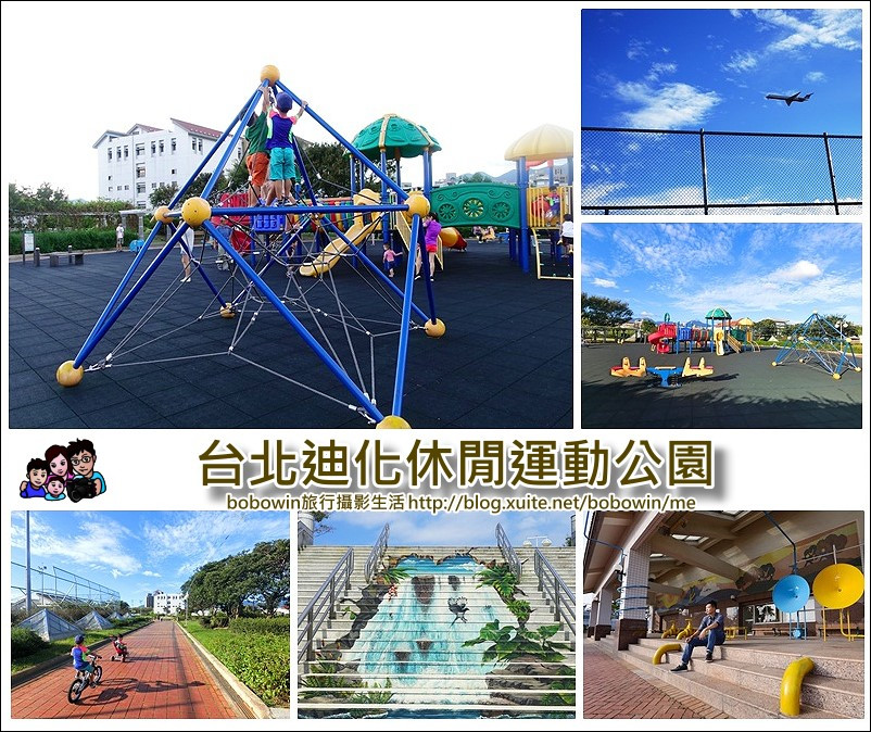 迪化休閒運動公園就在迪化污水處理廠上方,佔地4.6公頃,園區有溫水游池、籃球場、網球場、兒童遊戲區等,公園前方有跨堤景觀平台,可以欣賞基隆河岸景觀,還可以帶小朋友走至延平河濱公園散步。